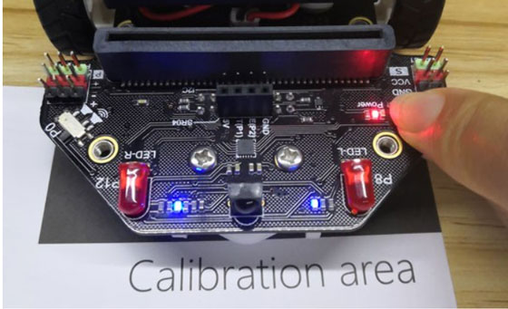 Place the Maqueen over the black calibration area on the included line map or over the darkest region you wish to use it on.