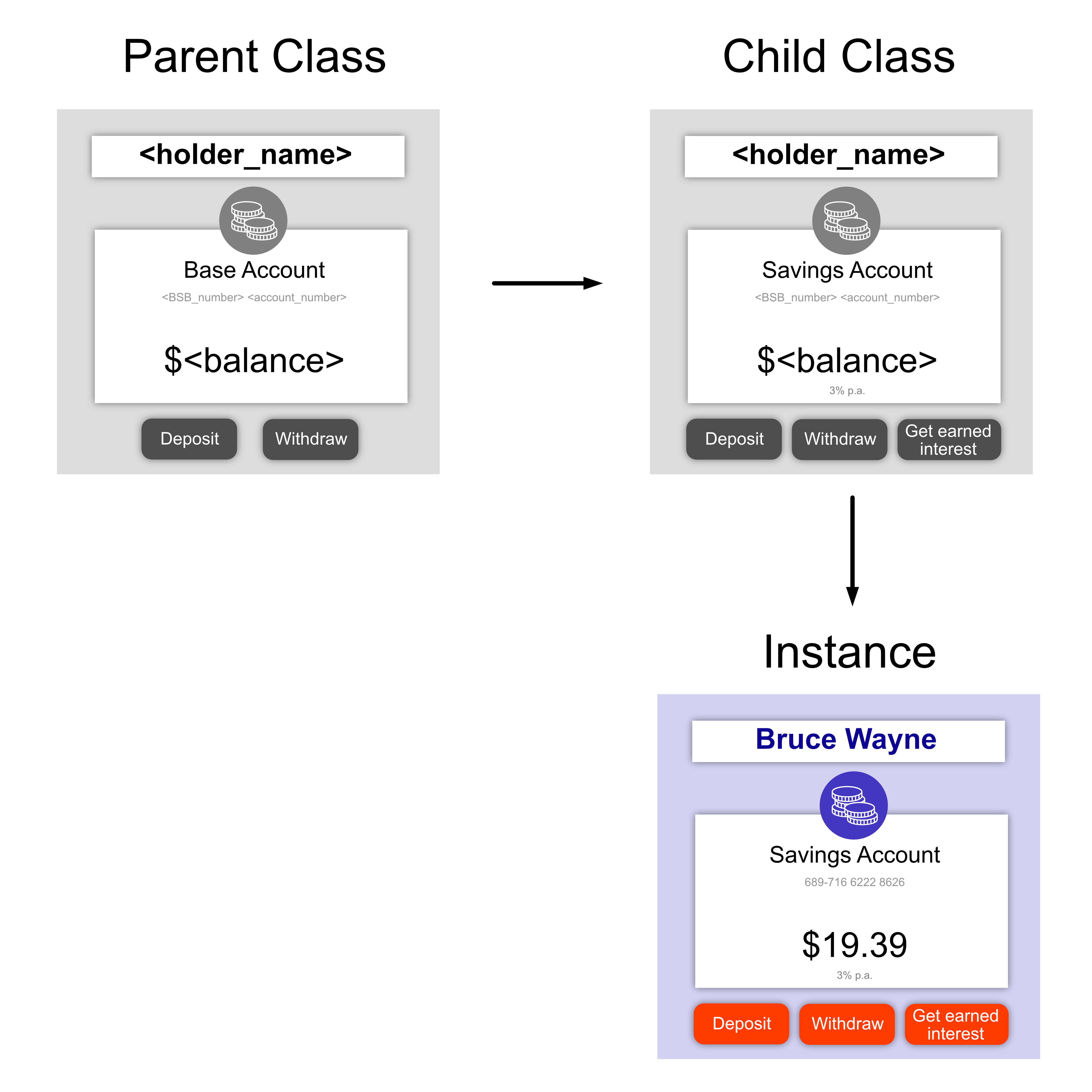 batman_account = SavingsAccount("689716", "62228626", 19.39, "Bruce Wayne")