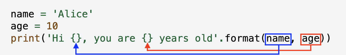 We can format strings using .format(). Here is an example: