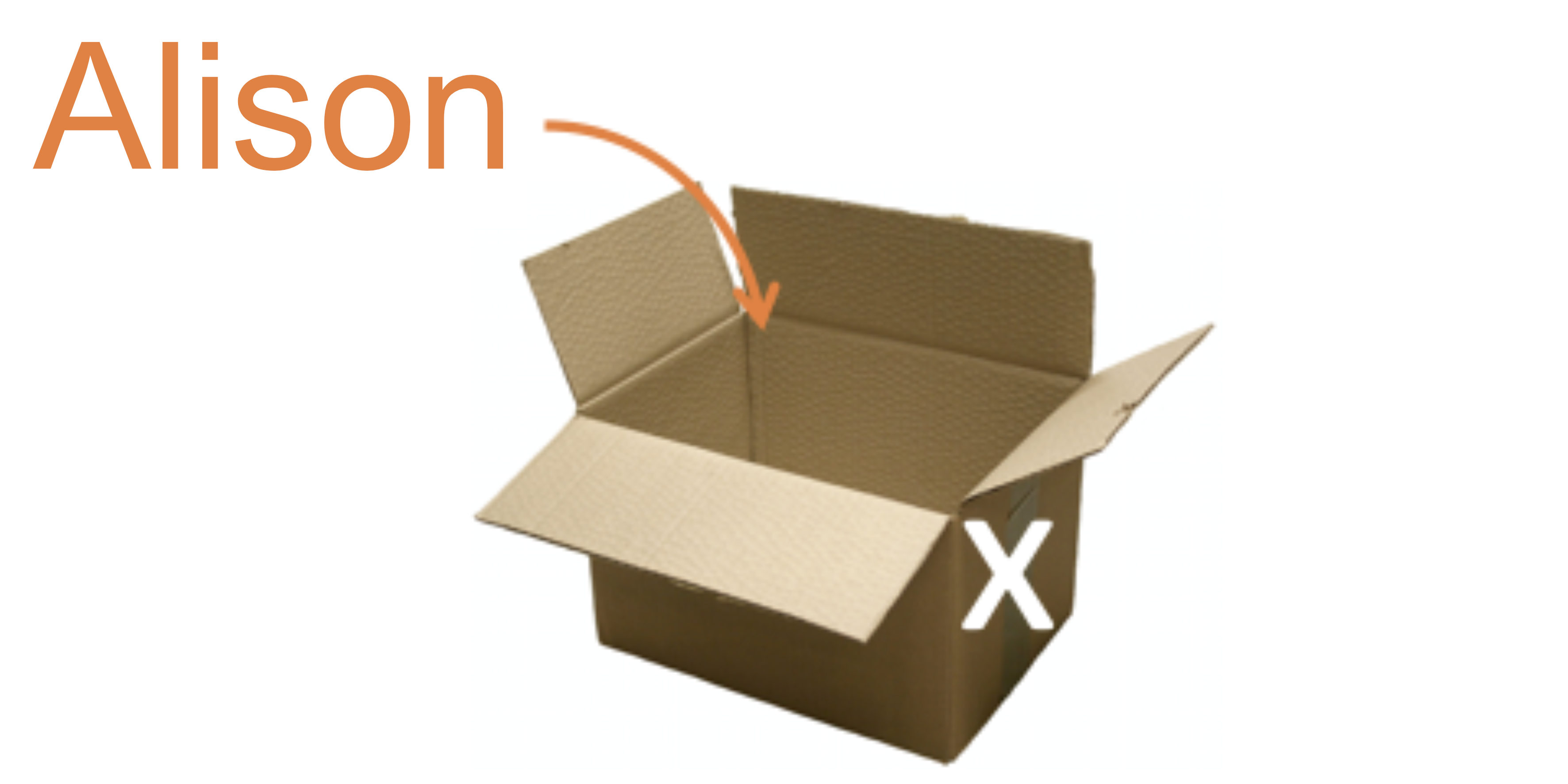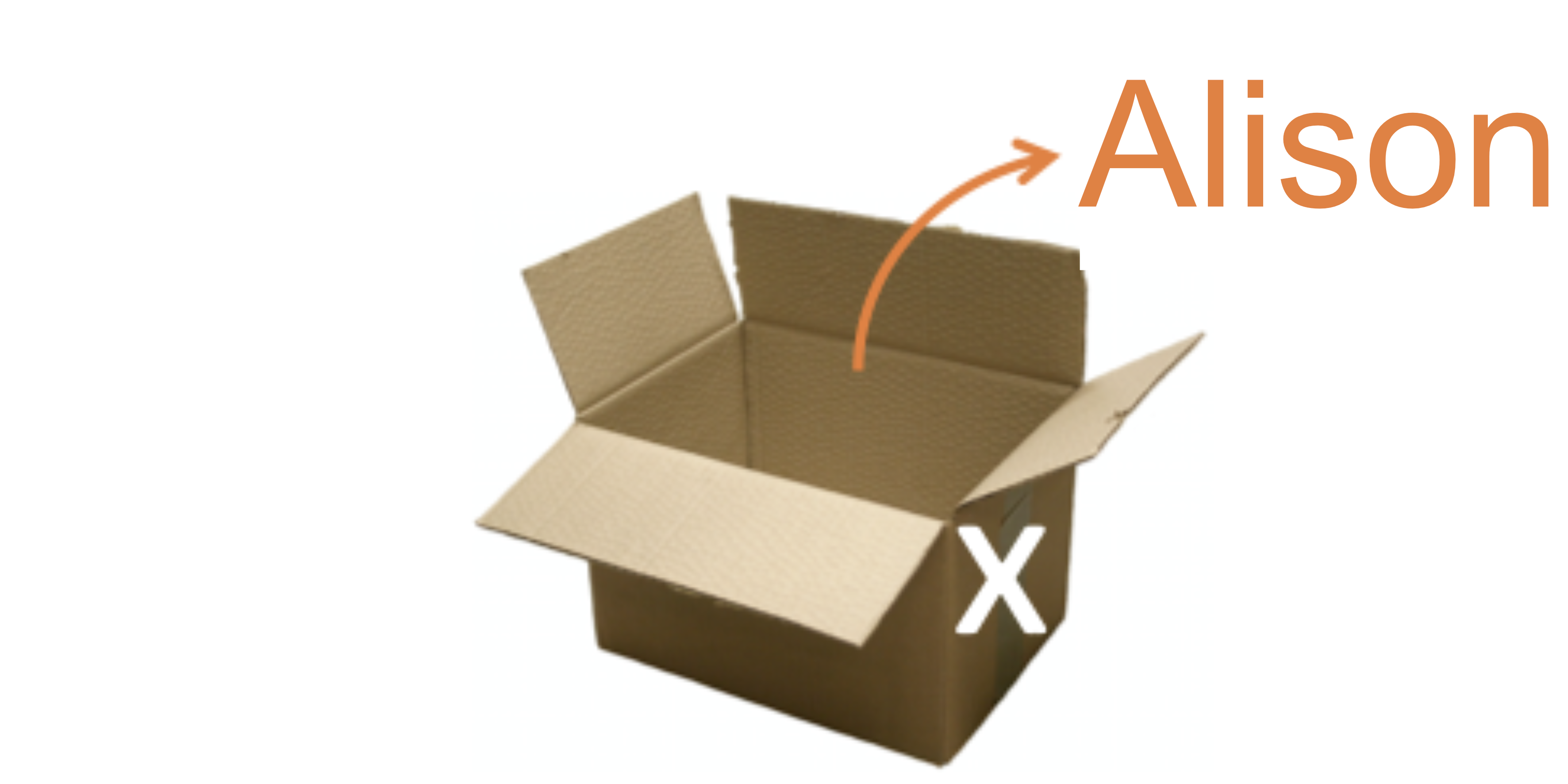 Note that the variable x does not have quotes but the string ‘Alison’ does!