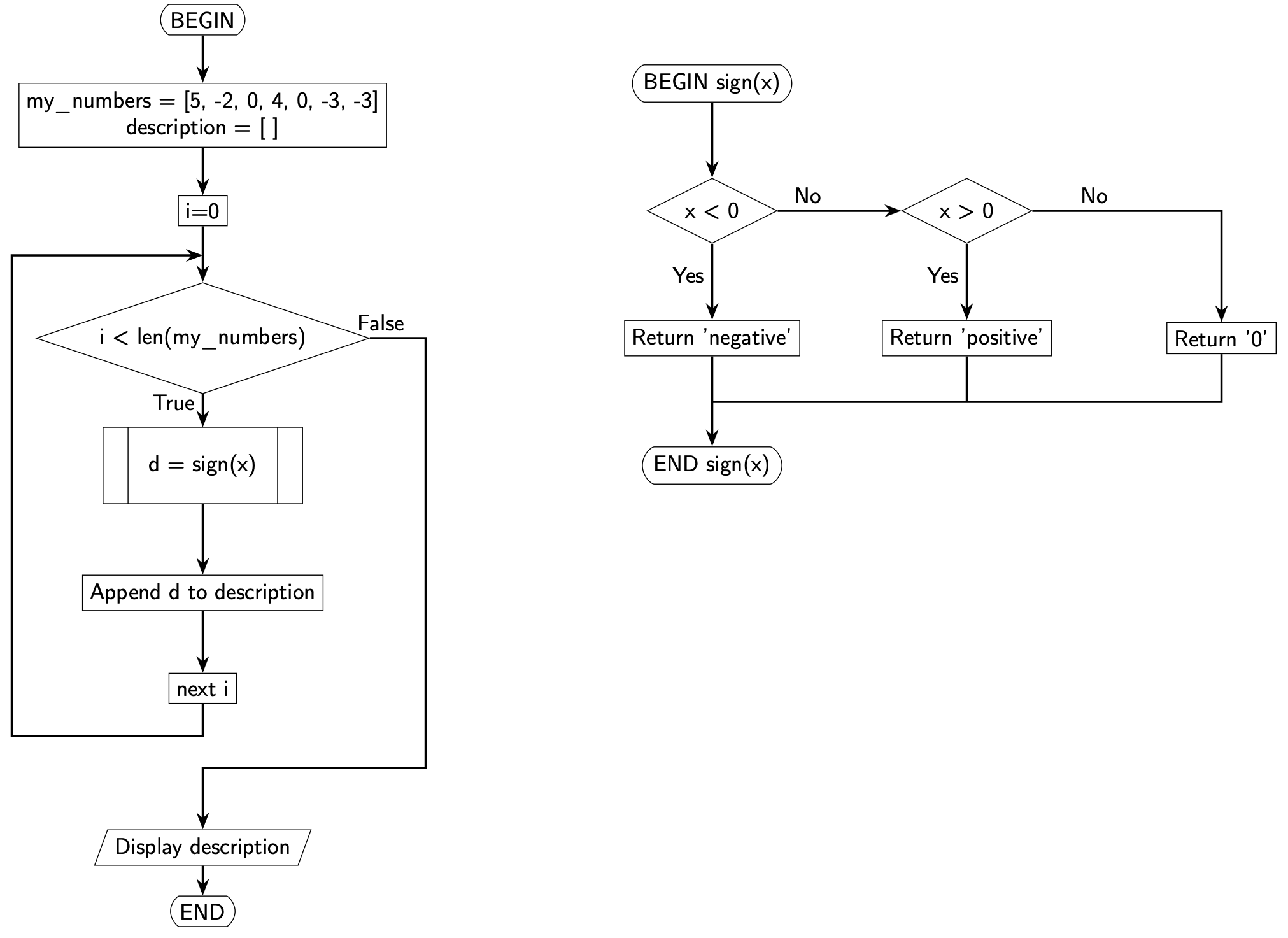 def sign(x): if x < 0: return 'negative' elif x > 0: return 'positive' else: return '0' my_numbers = [5, -2, 0, 4, 0, -3, -3] description = [] for i in range(len(my_numbers)): description.append(sign(my_numbers[i])) print(description)