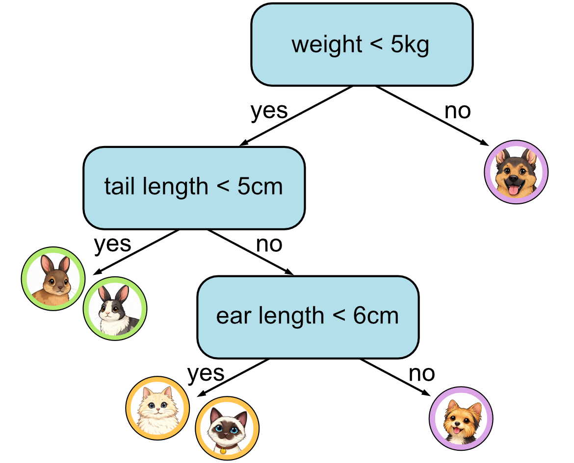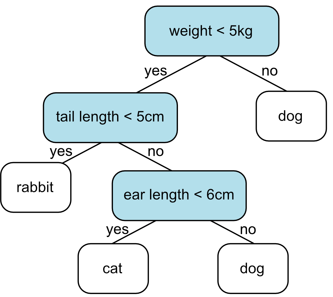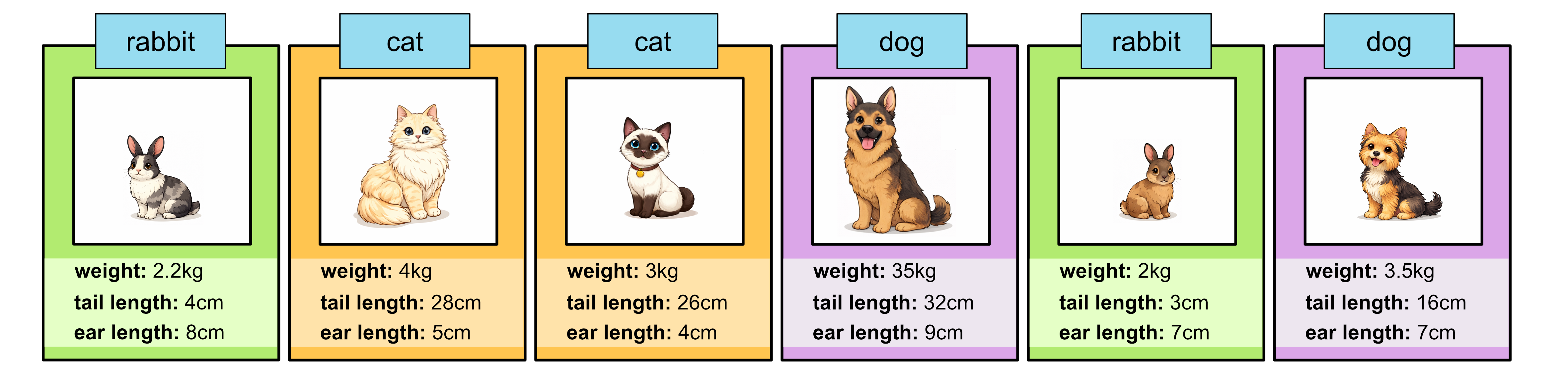 Our goal is to build a classification tree that can be used to separate out the 3 classes: rabbit, cat, dog.