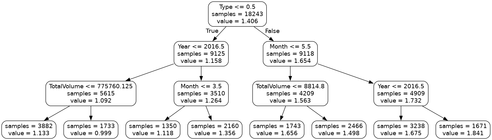 We will use this data to predict AveragePrice, which is the average price of an avocado on a given day.