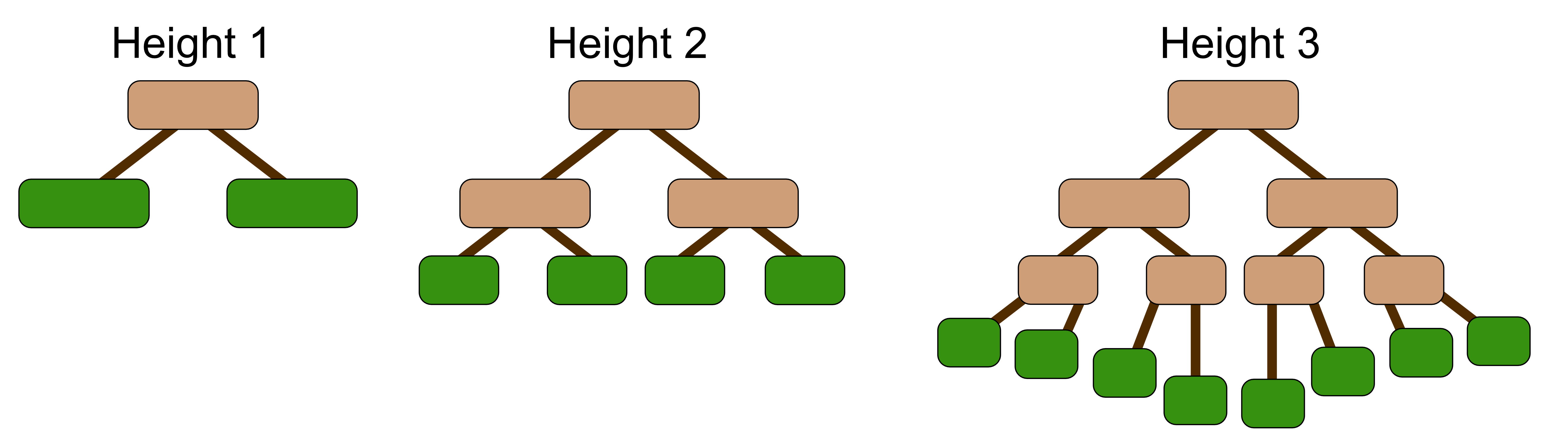 for a tree of height 2, the leaves are at depth 2, and so on…