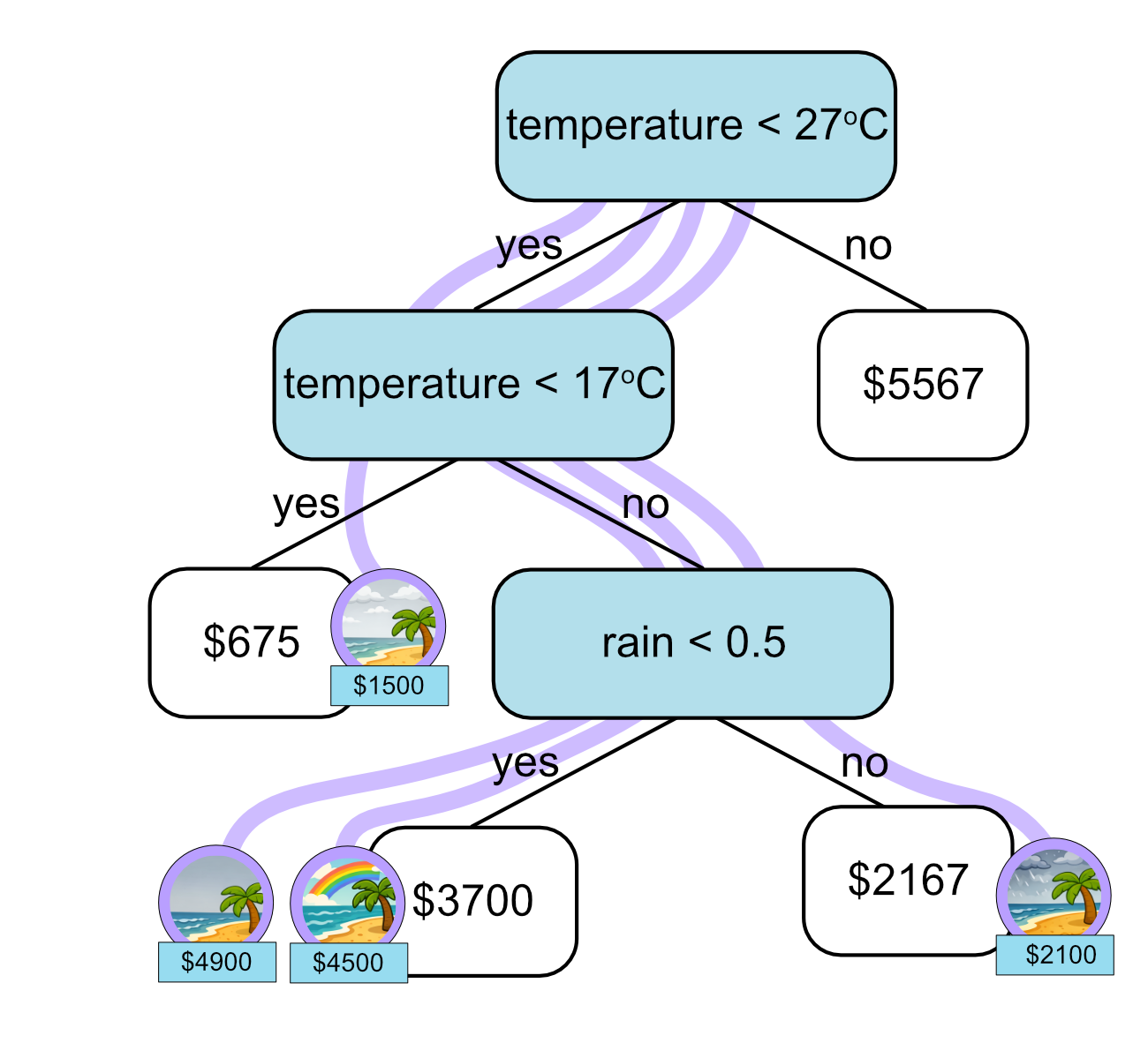 Let’s use our regression tree to predict the ice cream sales for each test sample.