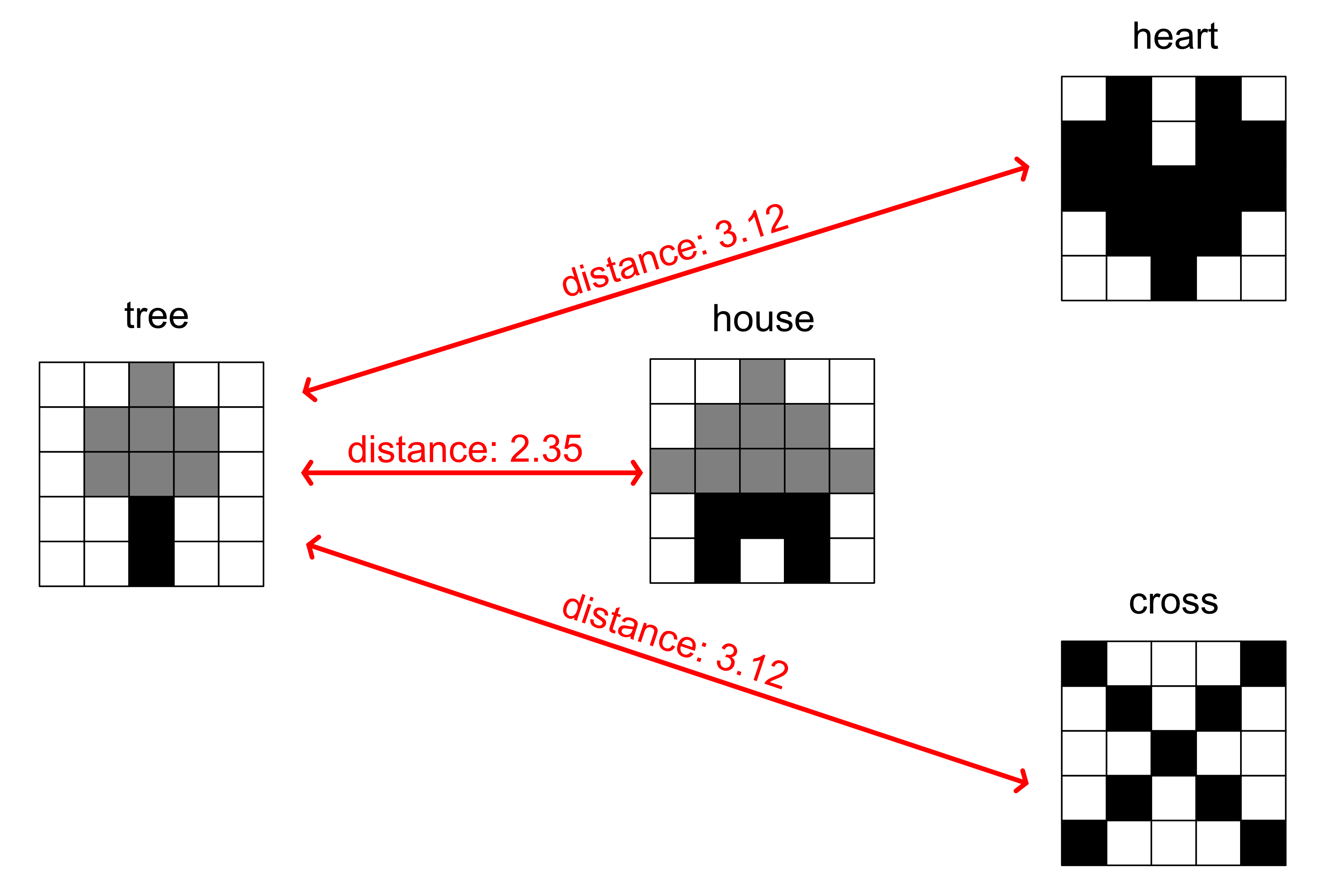 You’ll see that the tree is closest in distance to the house. And intuitively this should make sense because the house image is most similar to the tree image, and as we have previously discussed, distance can be used as a measure of similarity.