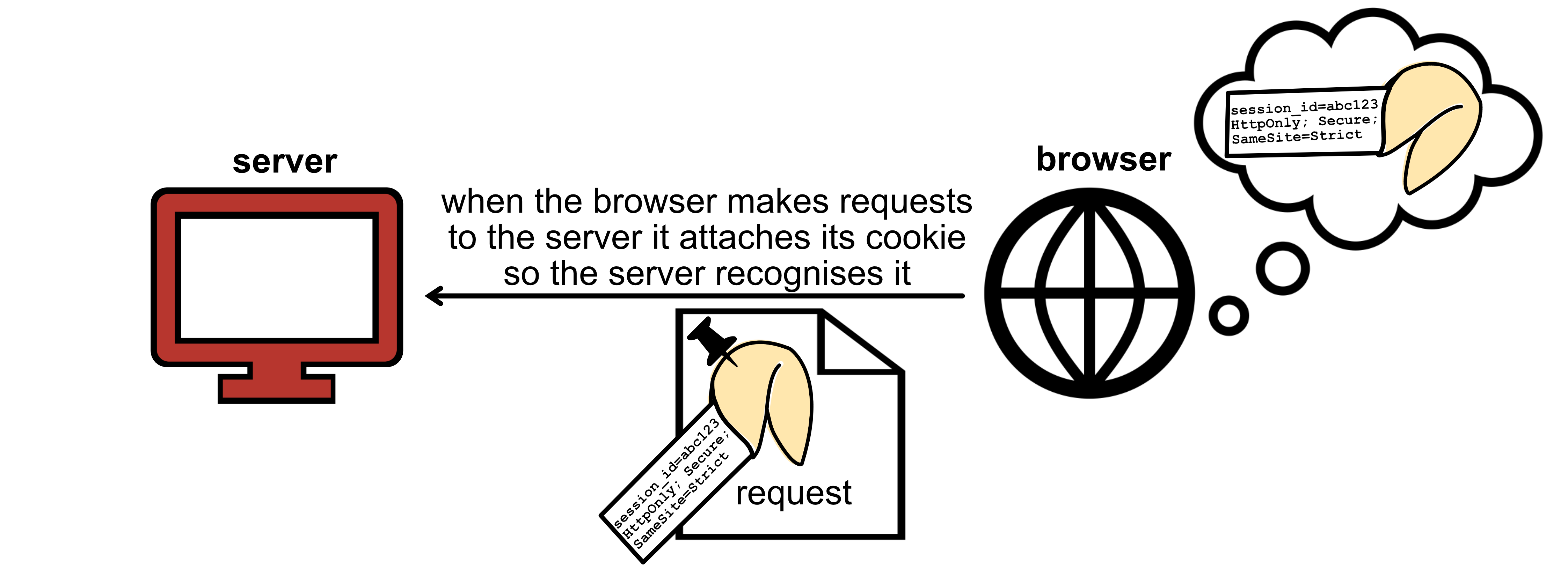 In this example: the server sets a cookie (session_id=abc123). The other