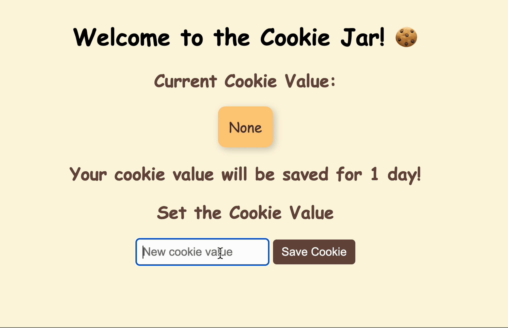 Create a flask app with a single page that shows the current value for a cookie and allows the user to set the value.