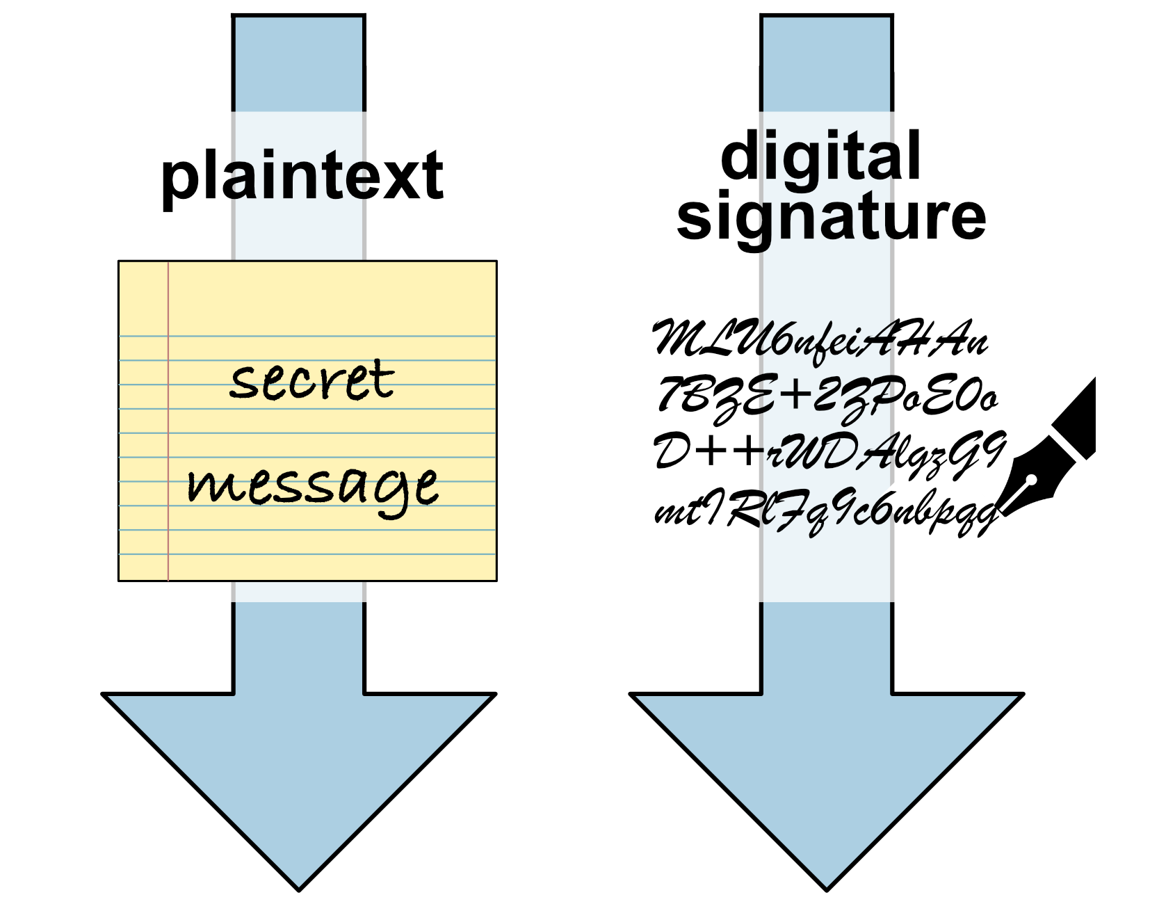 To get around this, we sign the hash, which uniquely identifies the data regardless of how many bits it occupies.