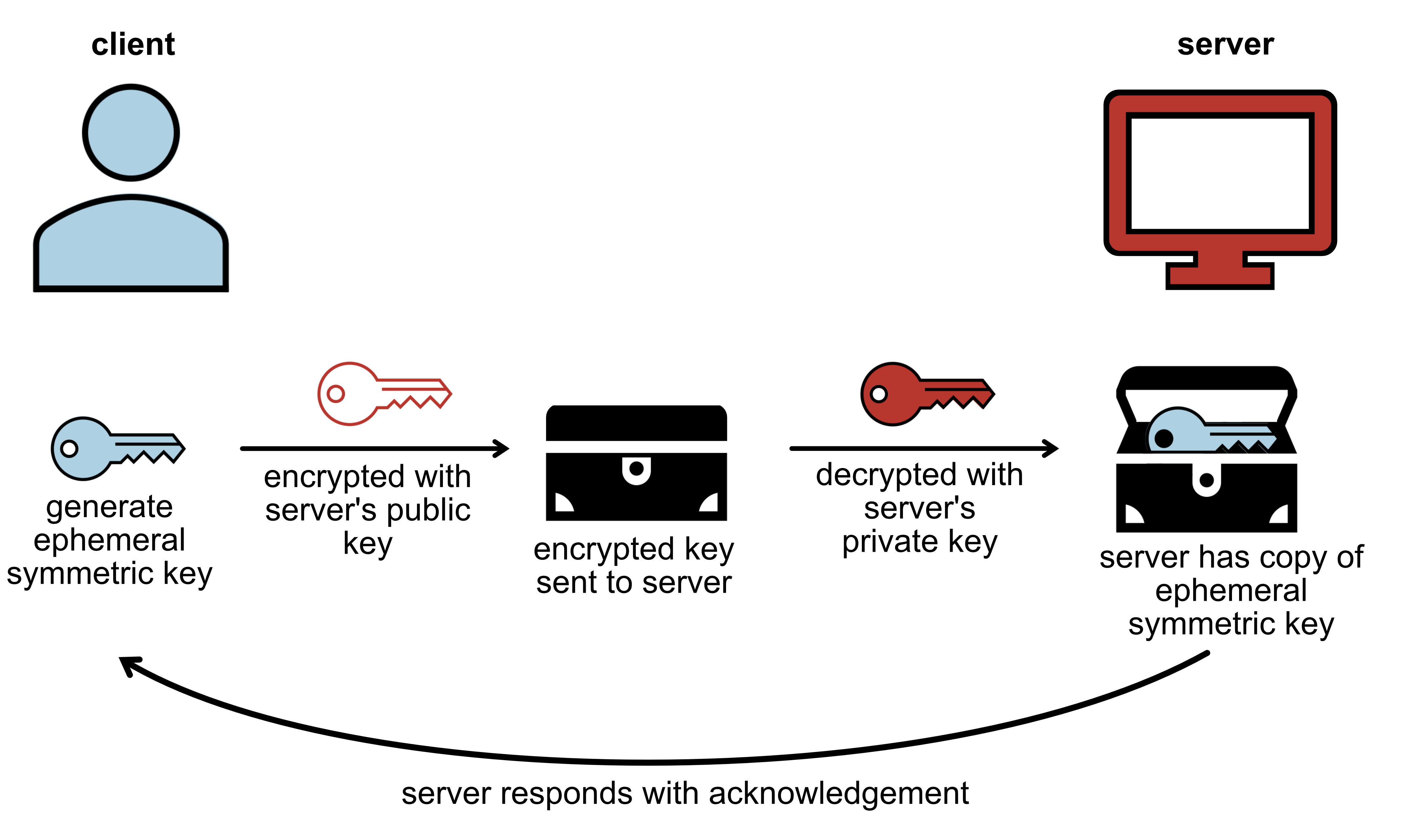 The client generates an ephemeral symmetric key, which will be used for the duration of the session