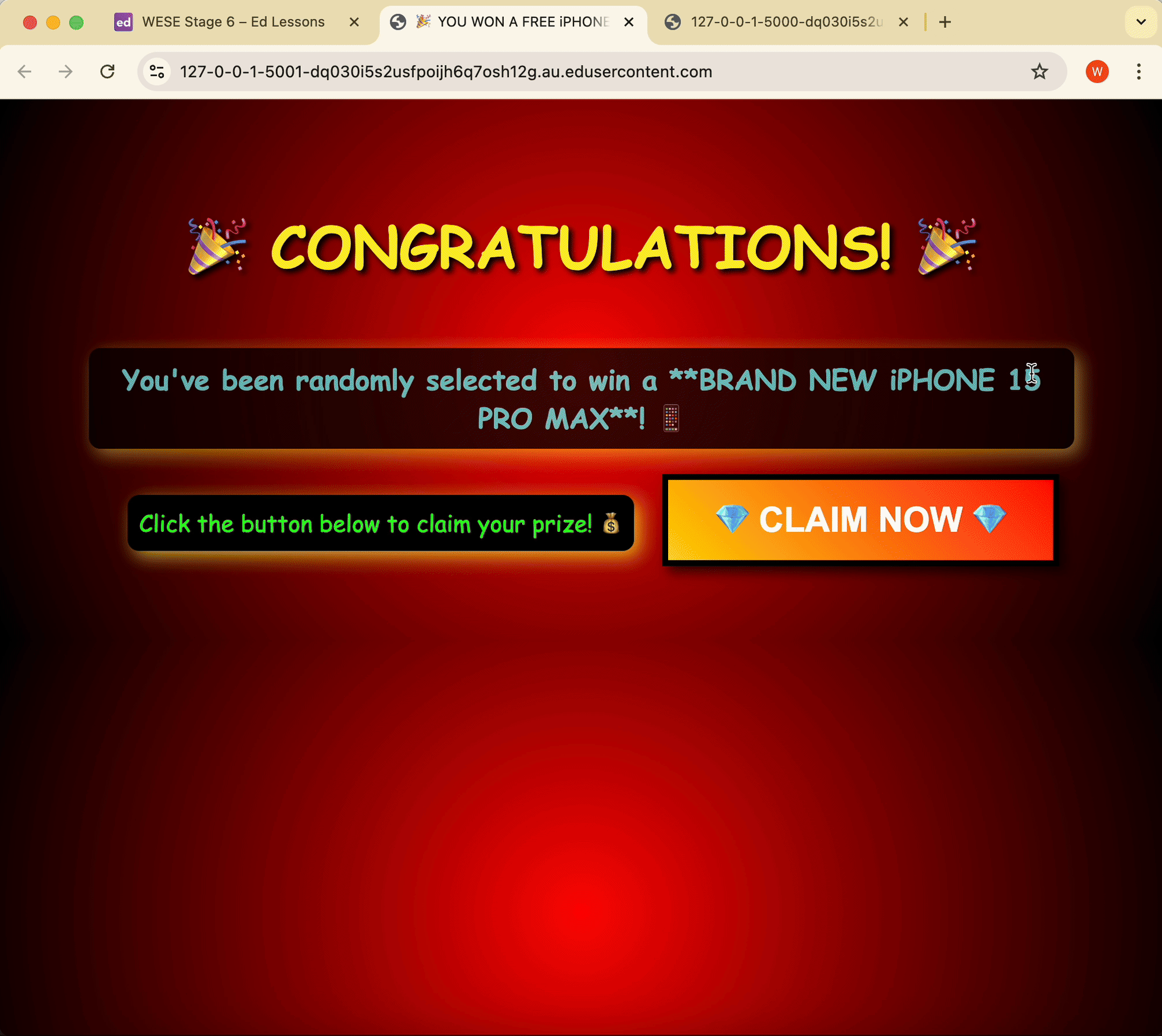 The uploader of the video on FakeTube is trying to increase the number of comments on his video. He’s setup a fake website offering free iPhones if users click a button.