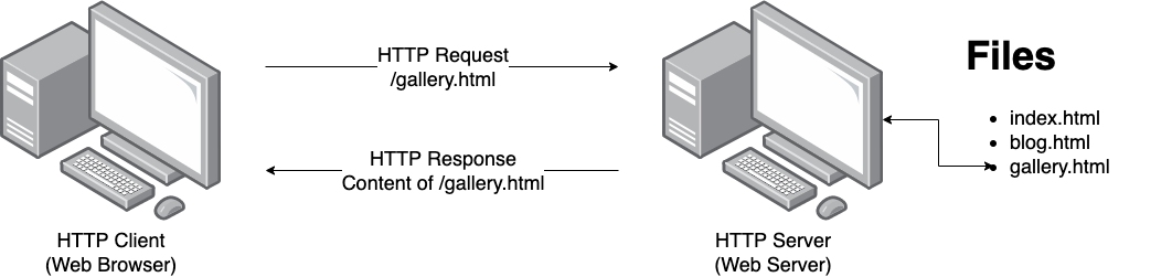The simplest web server hosts static content meaning that it reads the requested HTML files and returns them as the response.