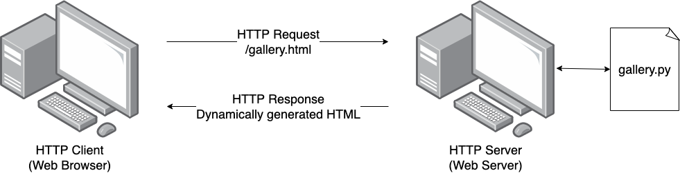 If we use a program to generate a HTTP response, we can then create dynamic HTML content. This simple idea powers most websites we use today.